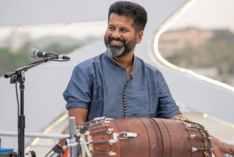 B C Manjunath (mridangam) is a dynamic artist who revealed an innate musical talent and interest in percussion from a young age, encouraged by his father, legendary mridangam player, Vidwan B K Chandramouli. Later he enlarged this musical perspective by training in Mridanga under Karnataka Kalashree K N Krishna Murthy and Sangeetha Kalanidhi Sri T.K.Murthy. Manjunath’s creative impulses have flowered in various forms, from classical to fusion and in solo and ensemble performances, accompanying many great artists from India and abroad, including Sangeetha Kalaratna, Sri R R Keshavamurthy, Sangeetha Kalaratna Sri H P Ramachar, Mysore M Nagaraj and Dr. Mysore M Manjunath (aka Mysore Brothers), Dr. Suma Sudhindra and Chitraveena N Ravikiran. He has also shared the stage with international legends like Turkish Sufi singer Kani Karaca and trombonist Robin Eubanks. He has worked with composers Rafael Reina, Riccardo Nova, members of Bhedam and with Conservatorium of Amsterdam, The Karnatic Lab Festival, Zagreb Music Biennale, Fabrica Italy, Santander Percussion Festival (Spain), Perth International Festival, Roma Europe Festival, Milano Musica/John Cage Festival, Ictus Ensemble (Belgium), Quintetto Bibiena (Italy) and Het Nederlands Fluit Orkest. He has designed extensive online courses on Konnakol and Mridangam for rhythm enthusiasts on platforms like Livdemy and Shaale.